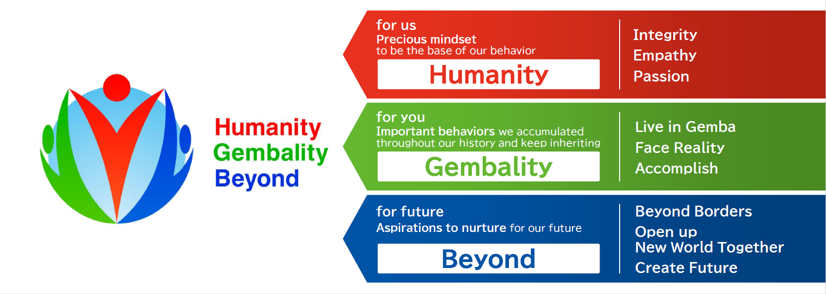 Living and prospering together with people, society and the globe, we aim to be a value-generating corporation that contributes to creation of a prosperous society.